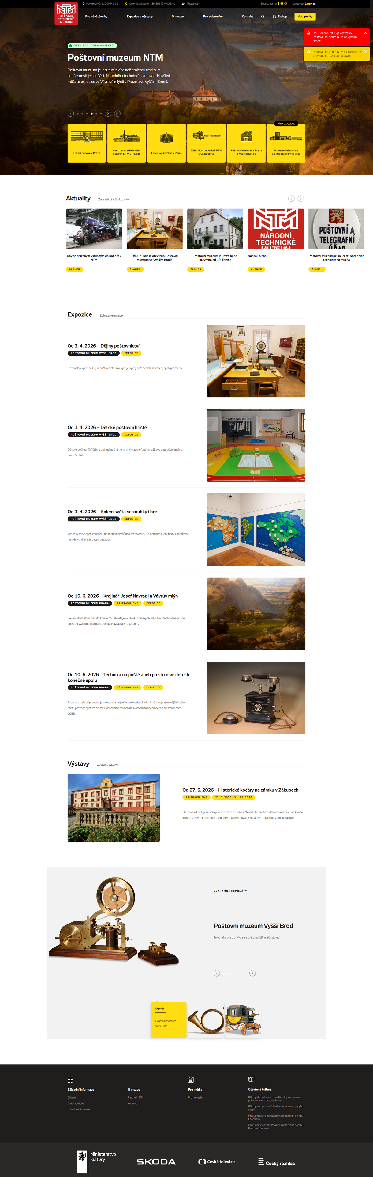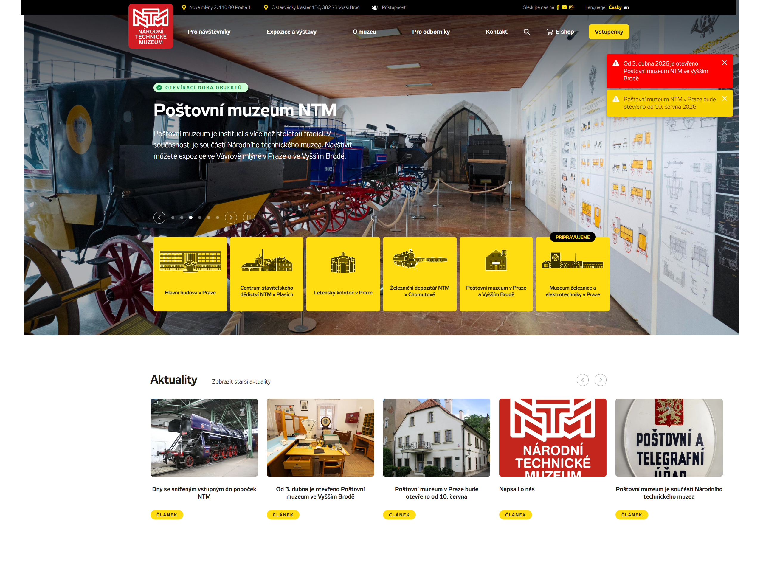 - Multisite řešení: Nový web Poštovního muzea jsme úspěšně včlenili do již existující jednotné administrace webů NTM. Administrátoři tak mají i tento web k dispozici v rámci jednoho unikátního prostředí, ve kterém již spravují hlavní web NTM, Centrum stavitelství v Plasích i Železniční depozitář v Chomutově.